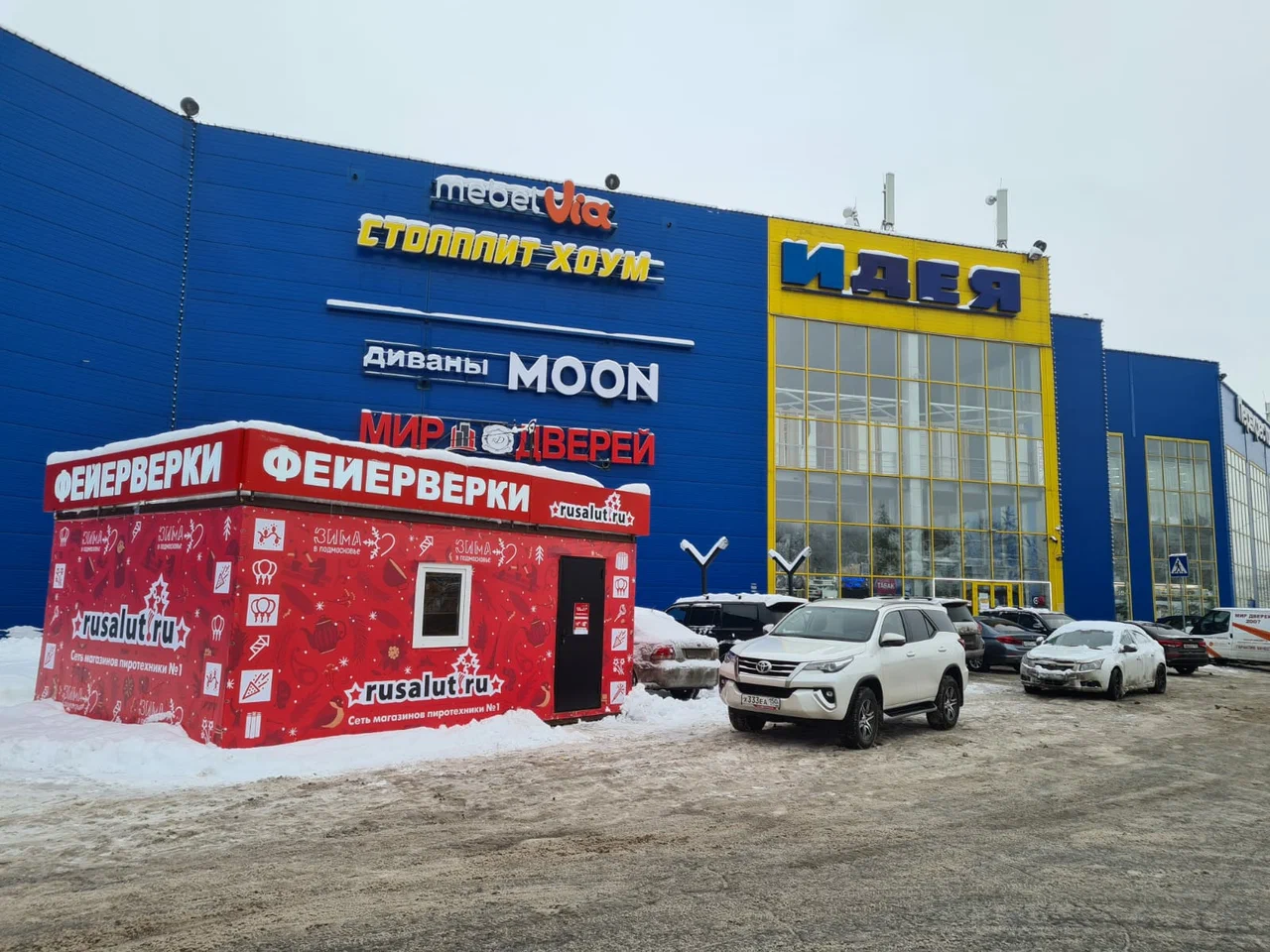 Фирменный павильон на парковке ТЦ "Идея".