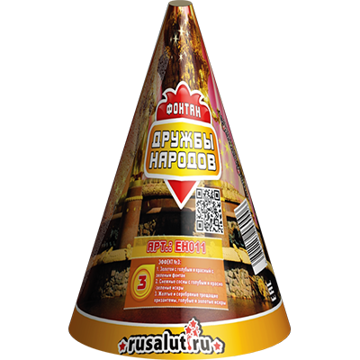 Фонтан-фейерверк «Дружба народов» EH011 представляет собой пиротехническое устройство, которое при запуске извергает гейзер цветастых искр. Длительность шоу составляет около 11 сек. Эту пиротехнику часто используют в дневное время, потому что поток вырывающихся искорок ярок, плотен и хорошо виден при свете солнца. Такие наборы не только светят, но и шумят, их нередко устанавливают на сцене во время выступлений артистов. Мы предлагаем купить фонтан-фейерверк от «Русалют» недорого. При соблюдении правил безопасности пиротехника не причинит вреда.