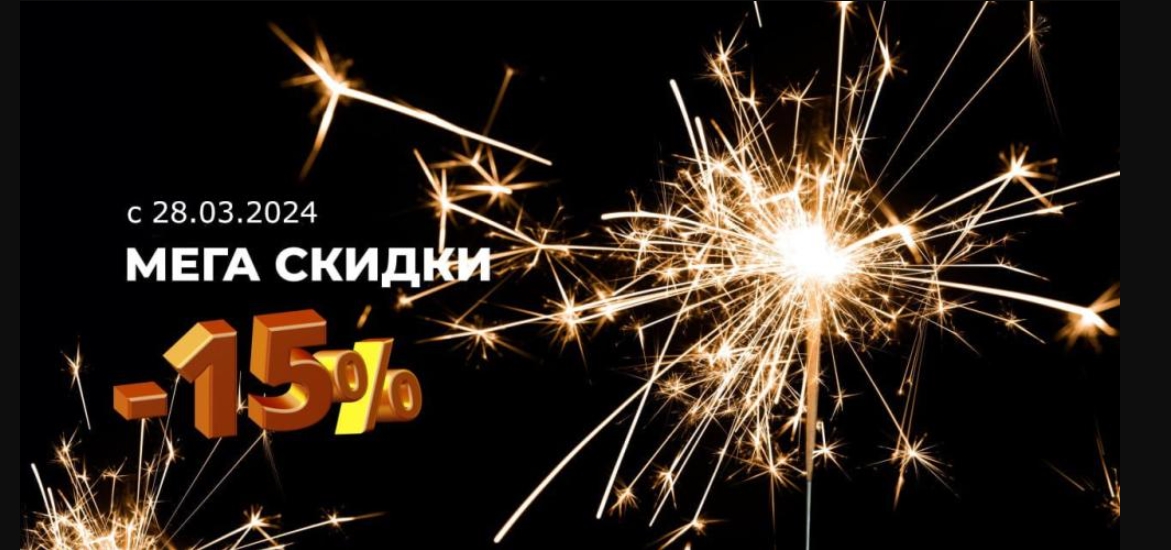 Скидка распространяется на весь ассортимент за исключением петард, хлопушек, летающих фейерверков, файеров и бенгальских огней.